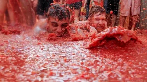 Every year, the town of Buñol becomes a giant tomato battlefield. Tens of thousands gather to throw overripe tomatoes at each other in the world’s biggest food fight.