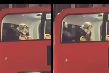 A video showing a young couple in an intimate moment on a moving double-decker bus ...